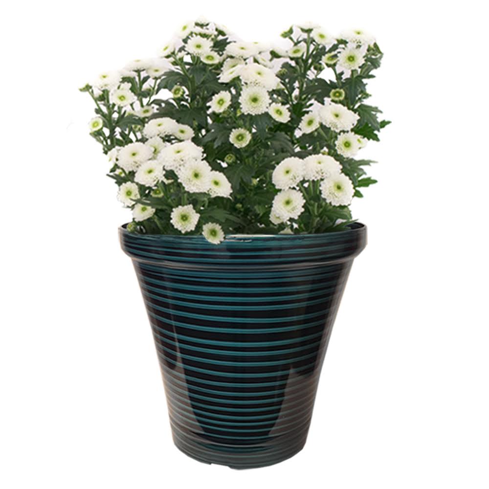 These large, colorfully glazed resin planters look like ceramic, yet they are a lightweight and made from a durable resin.